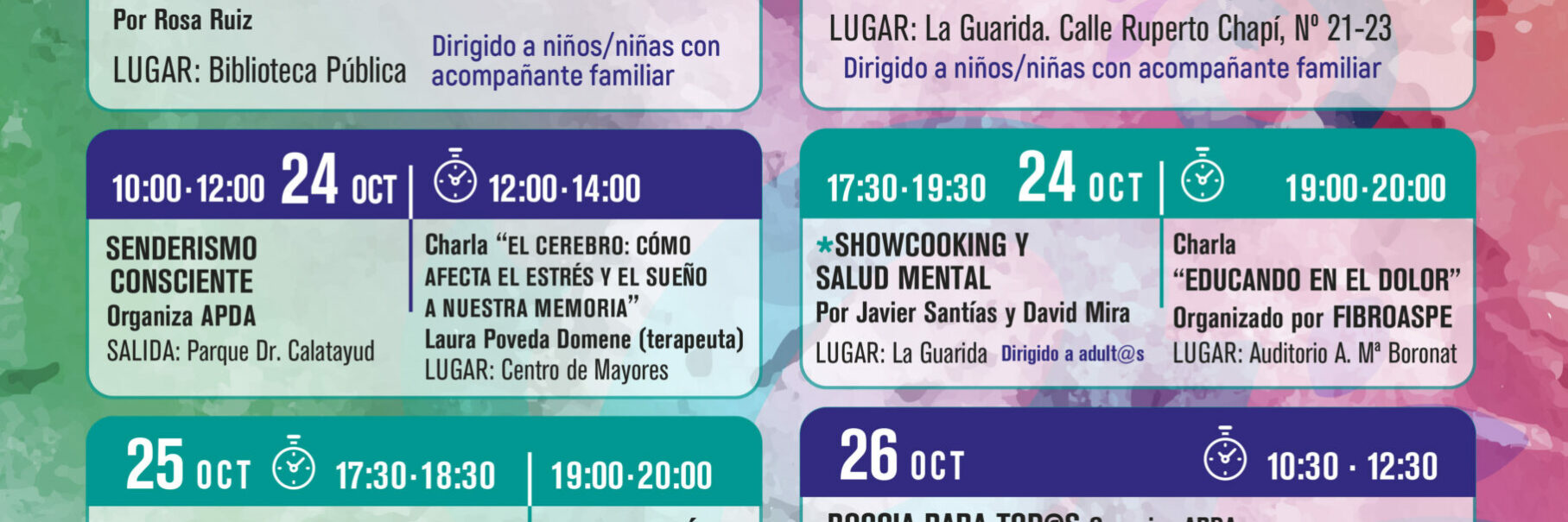 Desde el ámbito comunitario, destacamos la participación de diversas y plurales entidades de acción social del municipio de Aspe, involucrándose durante todo el mes en la realización de acciones, así como durante la feria de Activos en Salud, para el próximo 28 de octubre.