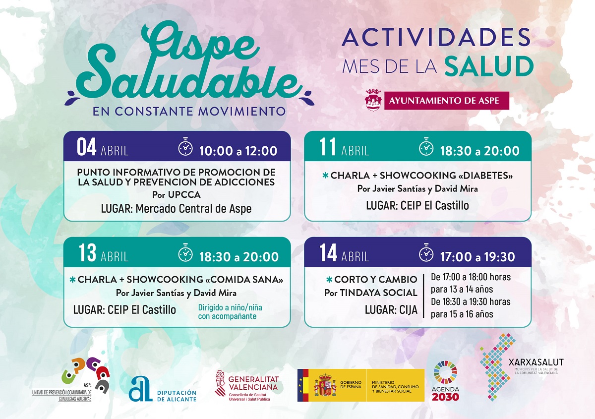 Prevención significa PROMOCIÓN DE LA SALUD. De especial relevancia es el COMPONENTE SOCIAL en el ámbito de la salud y para incentivarlo es crucial LA PERSPECTIVA DE LA PARTICIPACIÓN COMUNITARIA. Con esta intención desde la Unidad de Prevención Comunitaria de Conductas Adictivas, dependiente de la concejalía de Sanidad, hemos programado para el mes de abril,…